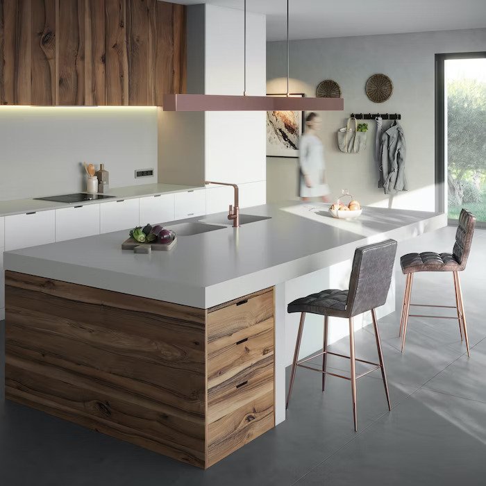 Um cinzento neutro, adaptável que se equilibra facilmente entre tons quentes e frios.