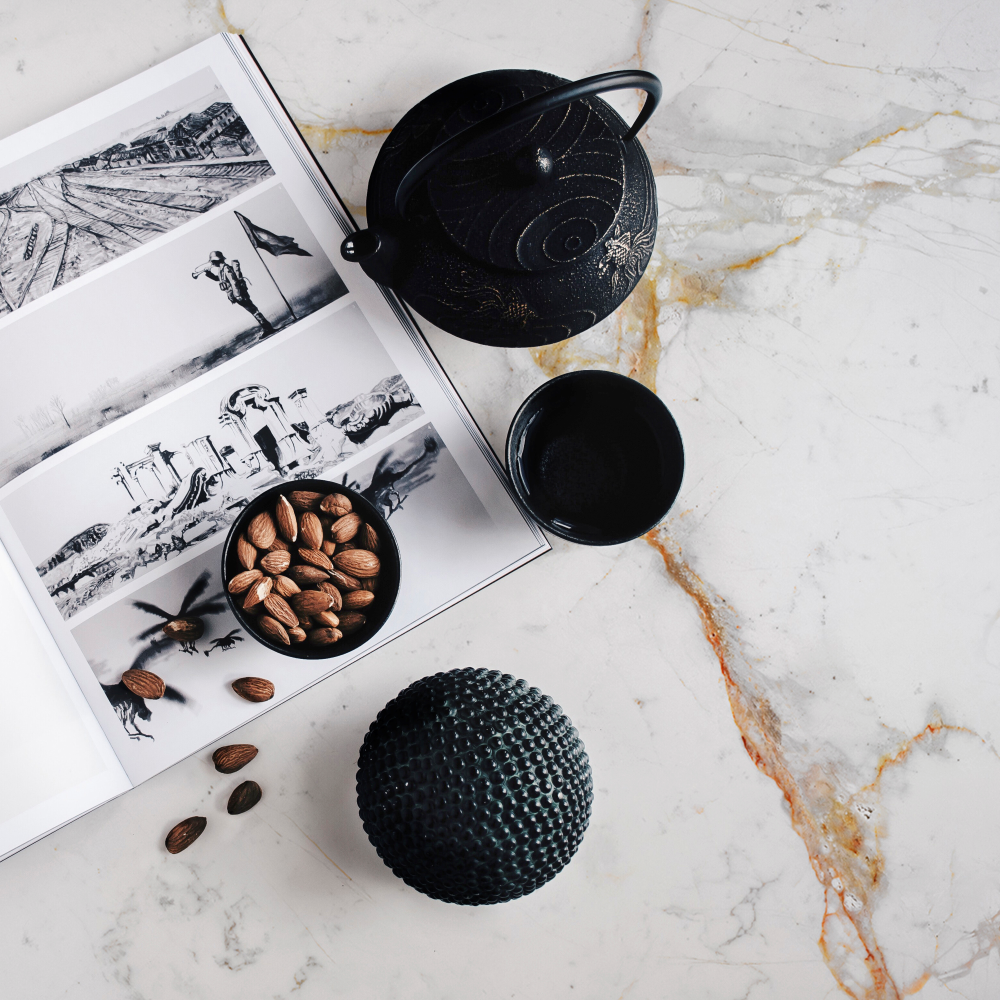 Evocando as paisagens ensolaradas da costa arábica, Abu Dhabi White lembra o calor abrasador e as águas brilhantes da península desértica. A surpreendente mesquita Sheikh Zayed da capital do Emirado influenciou diretamente este modelo de cores, com suaves veias douradas e manchas de cinza intenso que criam uma aparência sutil e delicada. Combinado com a textura da pedra natural não polida, esta placa oferece um visual refrescante e toque minimalista.
