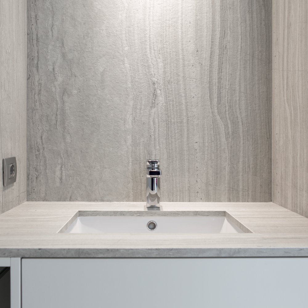 Inspirado no Silver Travertine, apresentamos o Strata Argentum. Um modelo finamente listrado no sentido horizontal, em tons cinzas claros, que reproduz os diferentes extratos deste material italiano, cada vez mais uma tendência. Disponível no acabamento Riverwashed, replica a textura original da pedra em seu estado mais puro.