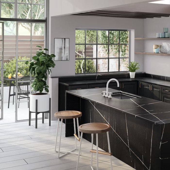 Et. Noir é o resultado de um design sensível inspirado pela assimetria e elegância da pedra natural. As suas linhas rectas e design sóbrio inspiram espaços escuros mas quentes, elegantes e sem luz