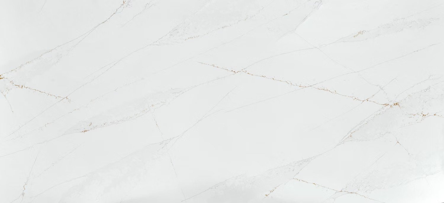 Os veios, em tons elegantesde dourado e cinzento, misturam-se num fundobranco com nuances, cruzandoe distribuindo a cor por cadacanto, acrescentandovalorao design.