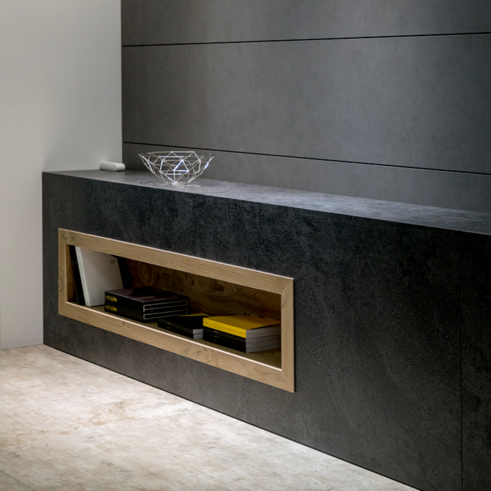 Krater é uma homenagem à ardósia natural. Observando o legado desta pedra em tom cinzento como material utilizado para construir alguns dos monumentos mais duradouros do mundo (incluindo o Cristo Redentor do Rio de Janeiro), Neolith desenvolveu uma superfície única com atrativo universal.